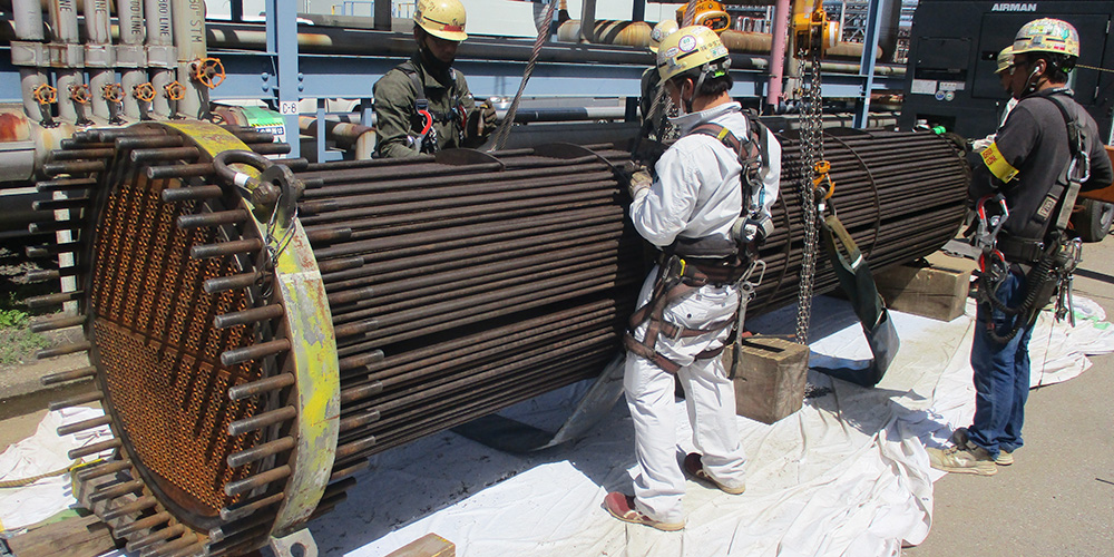 - チューブ、シェル内の付着物除去(高圧洗浄、ブラッシング等)